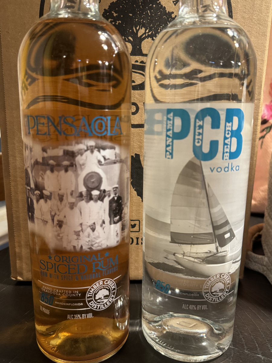 Cloth basket, cocktail shaker, and whiskey glass set, Timbercreek “Pensacola Original Spiced Rum” and Timbercreek “Panama City Beach Vodka”. Founded in 2014, Timber Creek Distillery is Florida’s grain-to-glass distillery, located just north of Destin in the heart of the Panhandle. We specialize in small-batch spirits made entirely in-house from milling local grain to bottling each product by hand. https://timbercreekdistillery.com 6451 Lake Ella Rd, Crestview, FL 32539 This item cannot be shipped. Donated and Solicited by: April Leake and Timbercreek Distillery