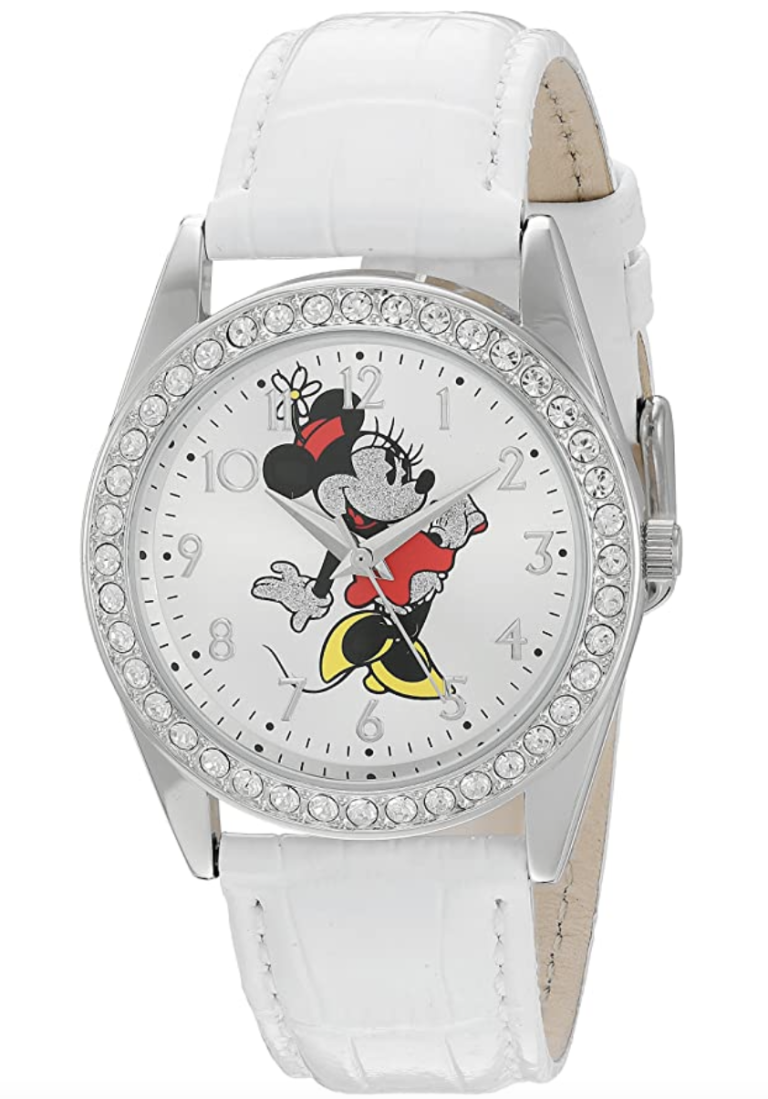 Add a little sparkle and nostalgia to your everyday look with this officially licensed Minnie Mouse Watch—a perfect piece for Disney lovers, collectors, or anyone who believes in a little everyday magic. This vintage-inspired women’s timepiece features Minnie’s iconic style, complete with articulating hands and a classic watch face design that balances playful charm with timeless elegance. Whether you're heading to the parks, collecting Disney memorabilia, or gifting a lifelong fan, this watch is sure to delight. Perfect for: - Disney fans of all ages - Minnie Mouse collectors - A whimsical holiday or birthday gift