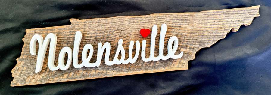 The barnwood came from a Nolensville Barn est. 98 years old. The wood is hand cut with a scroll saw and hand painted.
