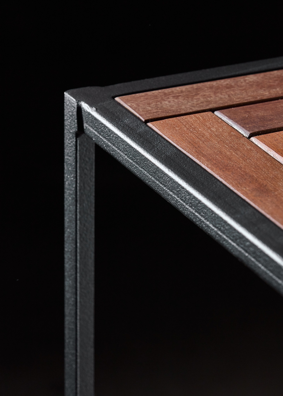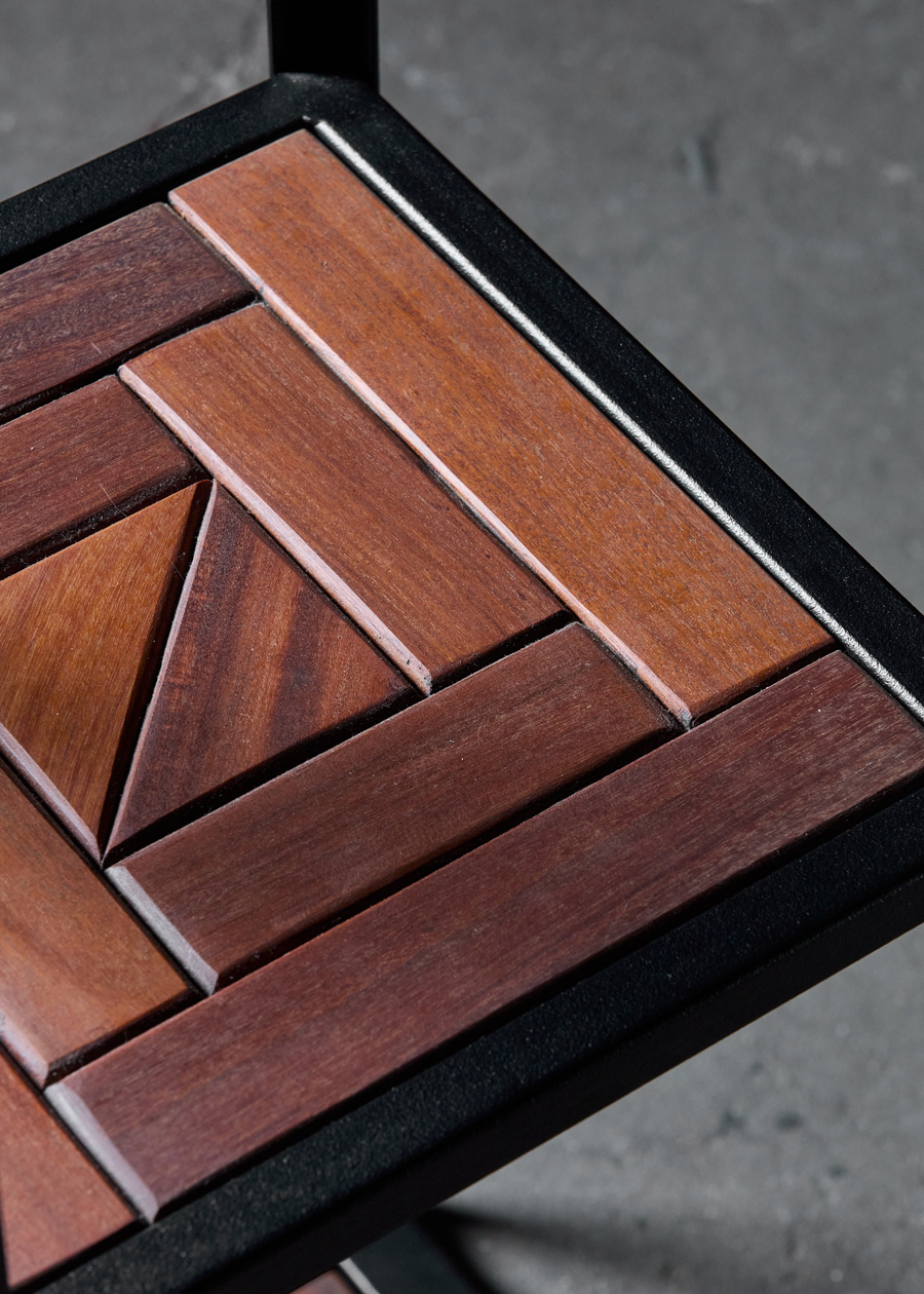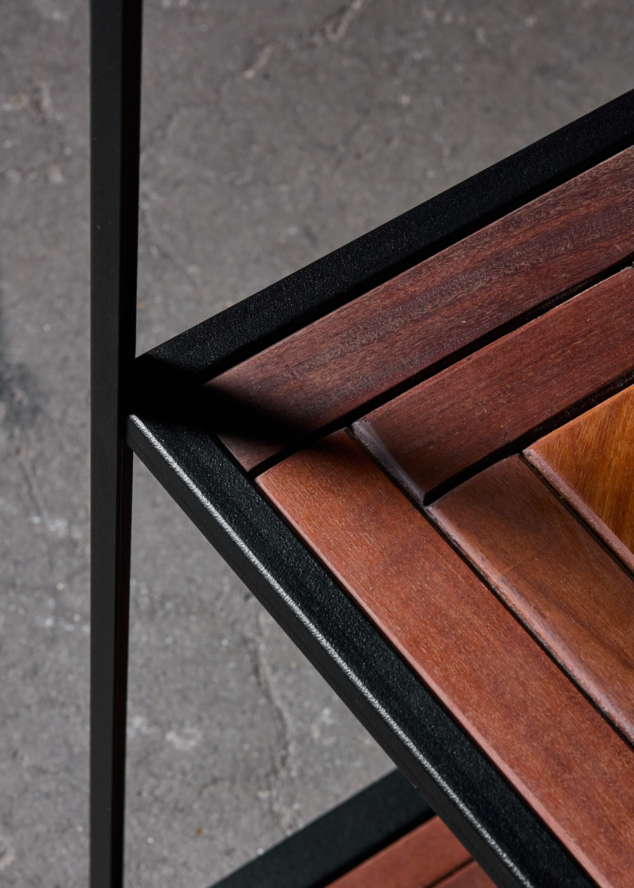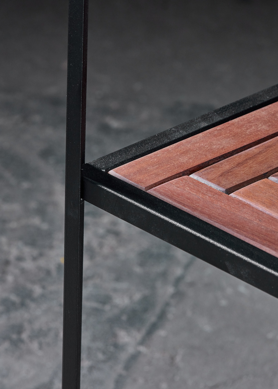 Painted steel with Ipé solid wood 30 x 30 x 98 cm