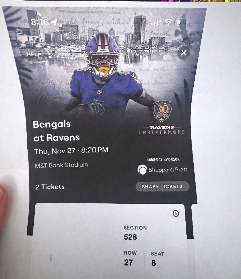 💜🏈 Ravensgiving Tailgate Party! 🦃🔥 Get ready to celebrate Thanksgiving, Baltimore style! Cheer on the Ravens vs. Bengals with everything you need for the ultimate tailgate — including comfy chairs, a grill, and a handy wagon to haul your game-day gear. Fuel the fun with an Uber gift card for easy travel and show your team pride with Ravens memorabilia that’ll make any fan’s heart soar. 💜💛 Whether you’re tailgating, toasting, or tackling leftovers, this basket is a total touchdown of turkey and team spirit! 🦃🏆 This auction item includes: - 2 Ravens vs. Bengals tickets on Thanksgiving - $50 Uber gift card - Wagon, Ravens tailgating grill and chairs - Custom painted glass - Pom poms, koozies, Ravens flags and bottle opener - Book set