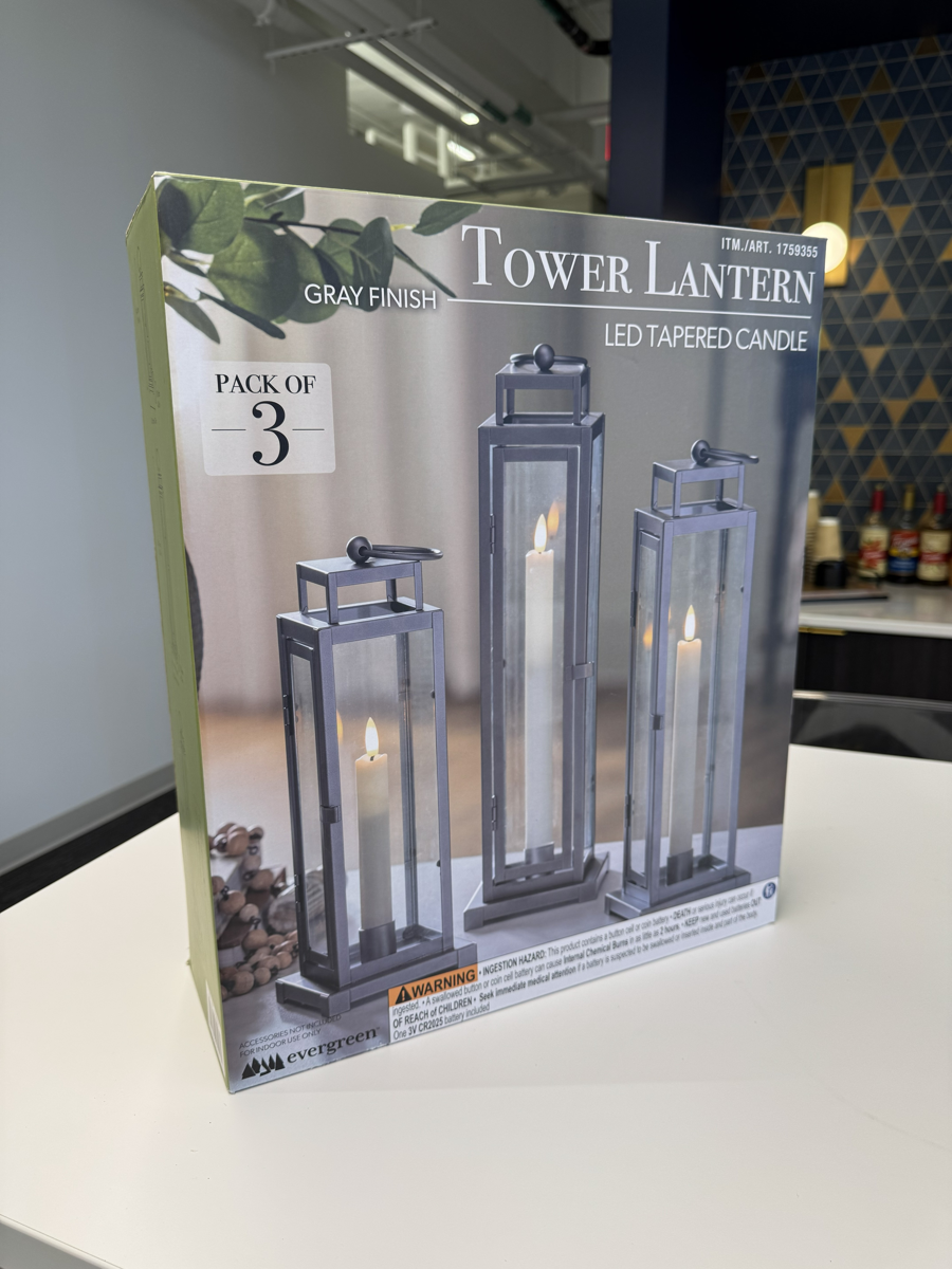 Tower Lanterns - Pack of 3 Add elegance and warmth to any room with this beautifully crafted set of three tower lanterns. Designed with intricate detail and timeless charm, these lanterns create a serene, inviting glow—perfect for cozy evenings, special occasions, or everyday ambiance. Each lantern features an all-steel frame with glass sides, offering both durability and sophisticated style. The set includes three varying heights (17.1", 15.5", and 13.6") to create a striking display on a mantle, table, or entryway. With a built-in timer function and remote, enjoying the perfect lighting is effortless. Whether you're unwinding after a long day or setting the mood for a gathering, this trio brings comfort, beauty, and calm to any space. A wonderful gift for relaxation and the perfect addition to your own home décor. Includes: 3 lanterns in ascending heights: 17.1", 15.5", 13.6" All-steel frame construction Glass sides Timer function + remote control