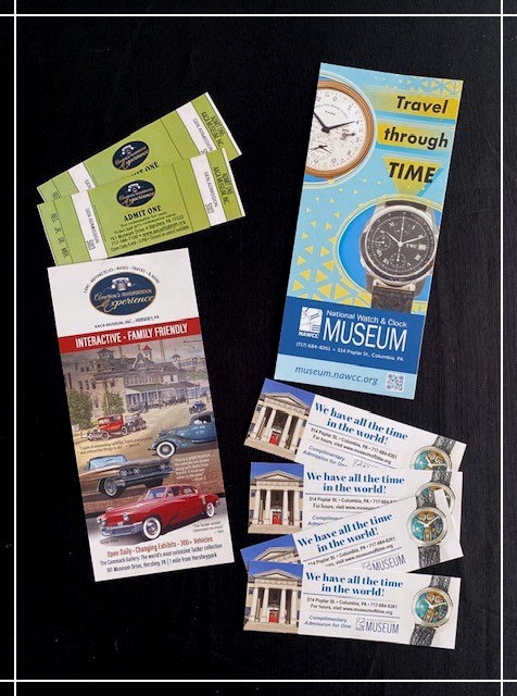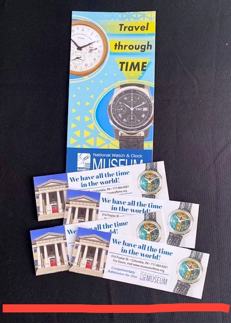 Package also includes 4 admission tickets to the National Watch & Clock Museum in Columbia, PA. It's a beautiful museum with so much to see! (Closed on Sundays & Mondays)