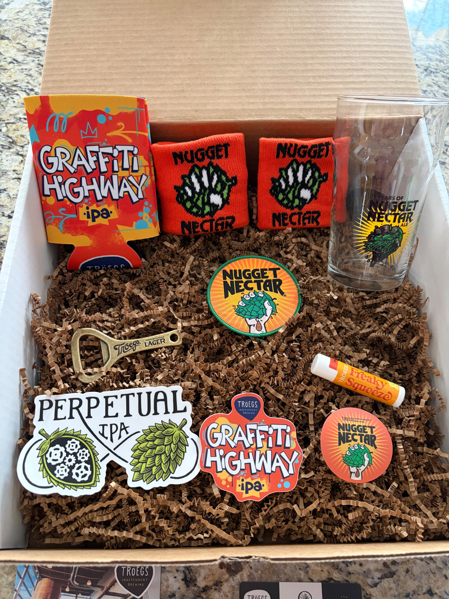Tröegs Independent Brewing Gift Box Comes with a $50 gift card, brewery tour certificate, glass, beer opener, wrist bands, chapstick and more. Must be 21+ to win.