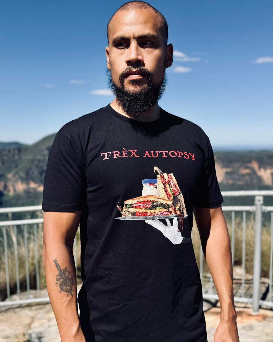 T-Rex Autopsy Heavy Metal Sandwich T-shirt