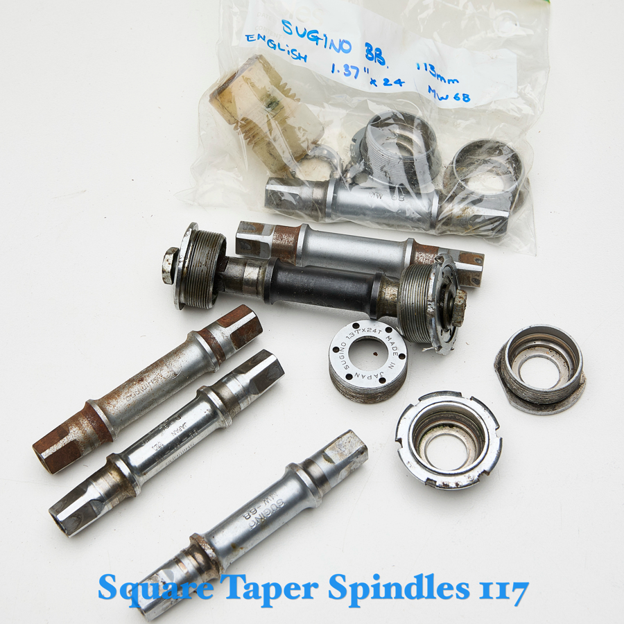Tub of Misc Square Taper Spindles, Cups & Bearings