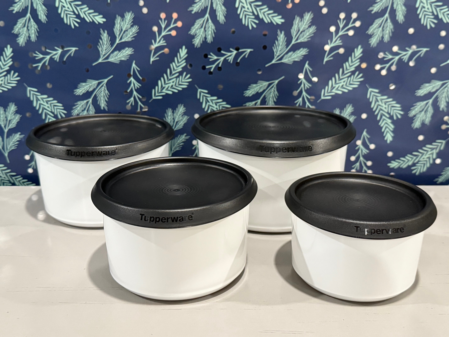 4 stackable, airtight containers. 8.5 cups/6 cups/4 cups/2 cups Donated by Darlene
