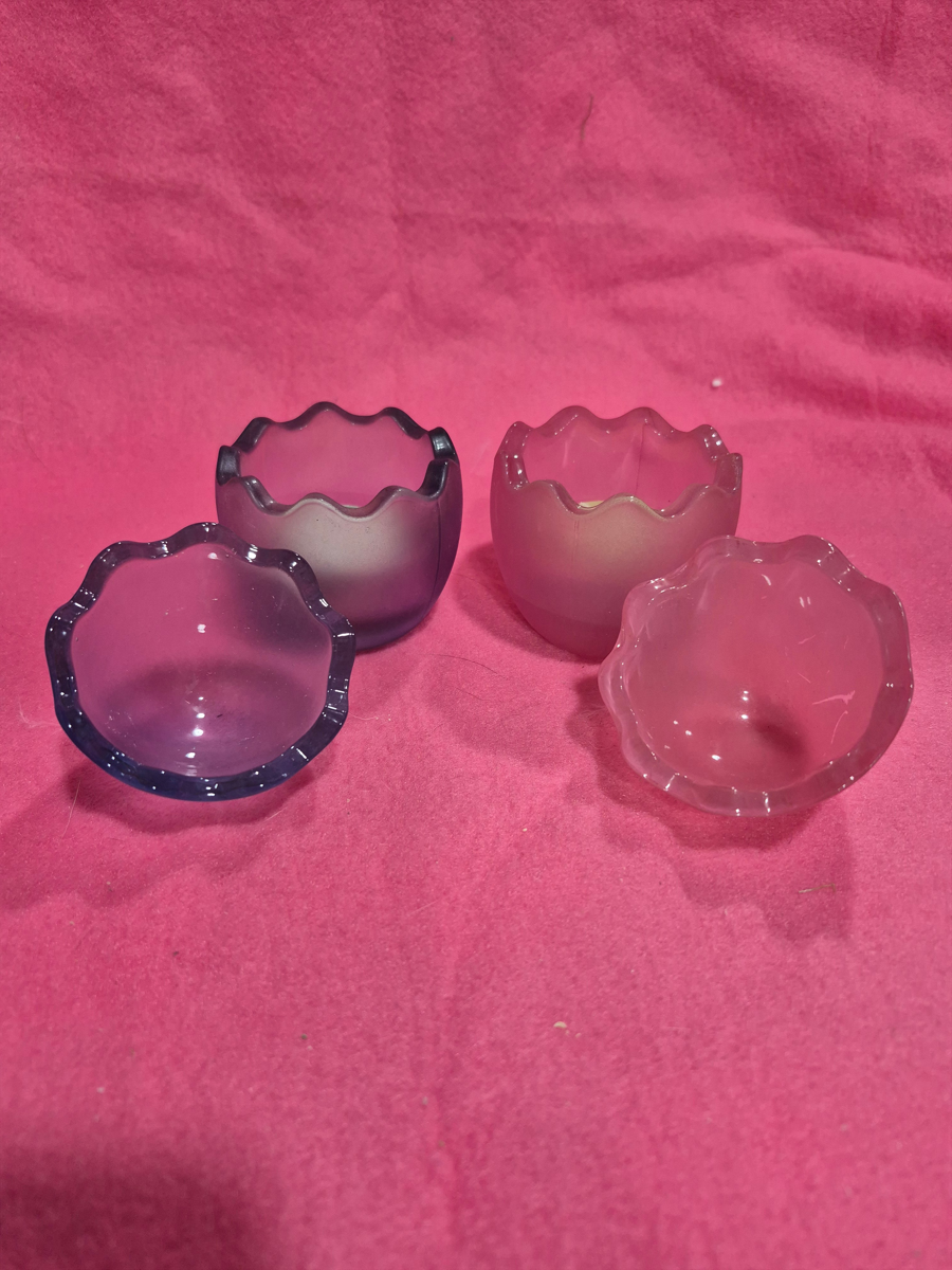 2 glass votive candles for Easter. 1 pink, 1 lavender. New in Box.