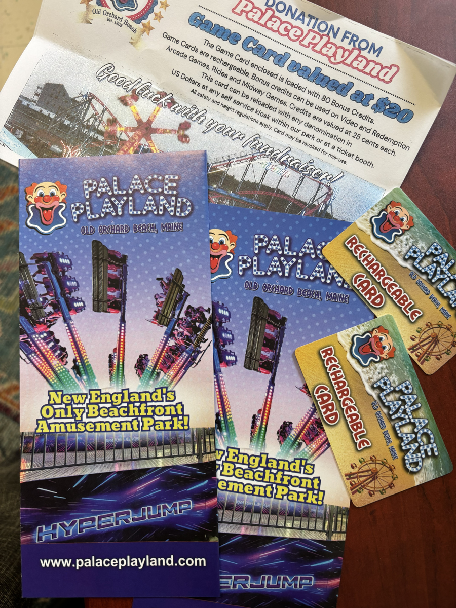 Two Palace Playland rechargeable game cards, each with 80 bonus credits good towards arcade games, rides and midway games.