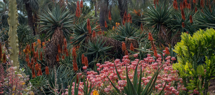 Botanical collections feature roses, succulents, orchids, tropical plants, cycads, camellias, and more, including rare species and unusual specimens. Sixteen themed gardens span roughly 130 acres, and the botanical complex includes research facilities as well as a herbarium.