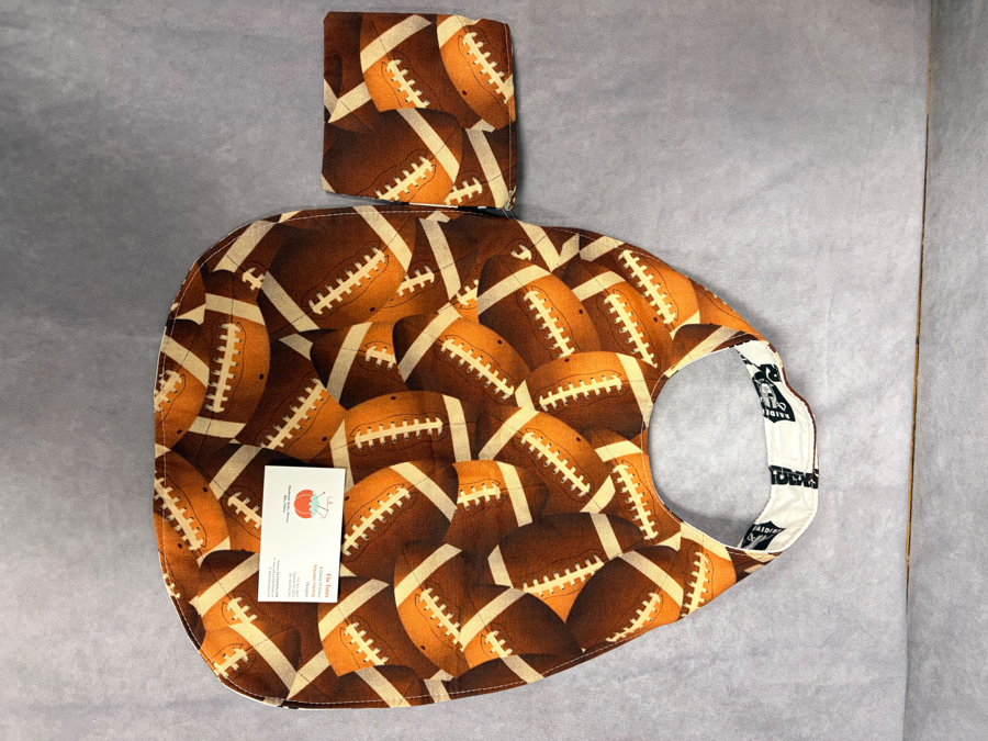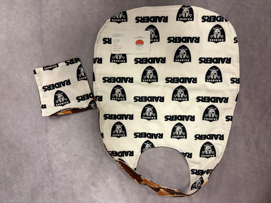 Two-sided football bib. One side Raiders. One side football image collage.