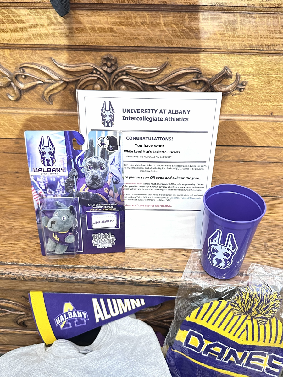Support the Great Danes with four tickets to a UAlbany home game during the 2025–26 season! A great outing for families, alumni, or basketball enthusiasts. This basket also includes UAlbany merchandise to help you show your school spirit in style on game day. Thank you UAlbany and Janelle Drach for your support!