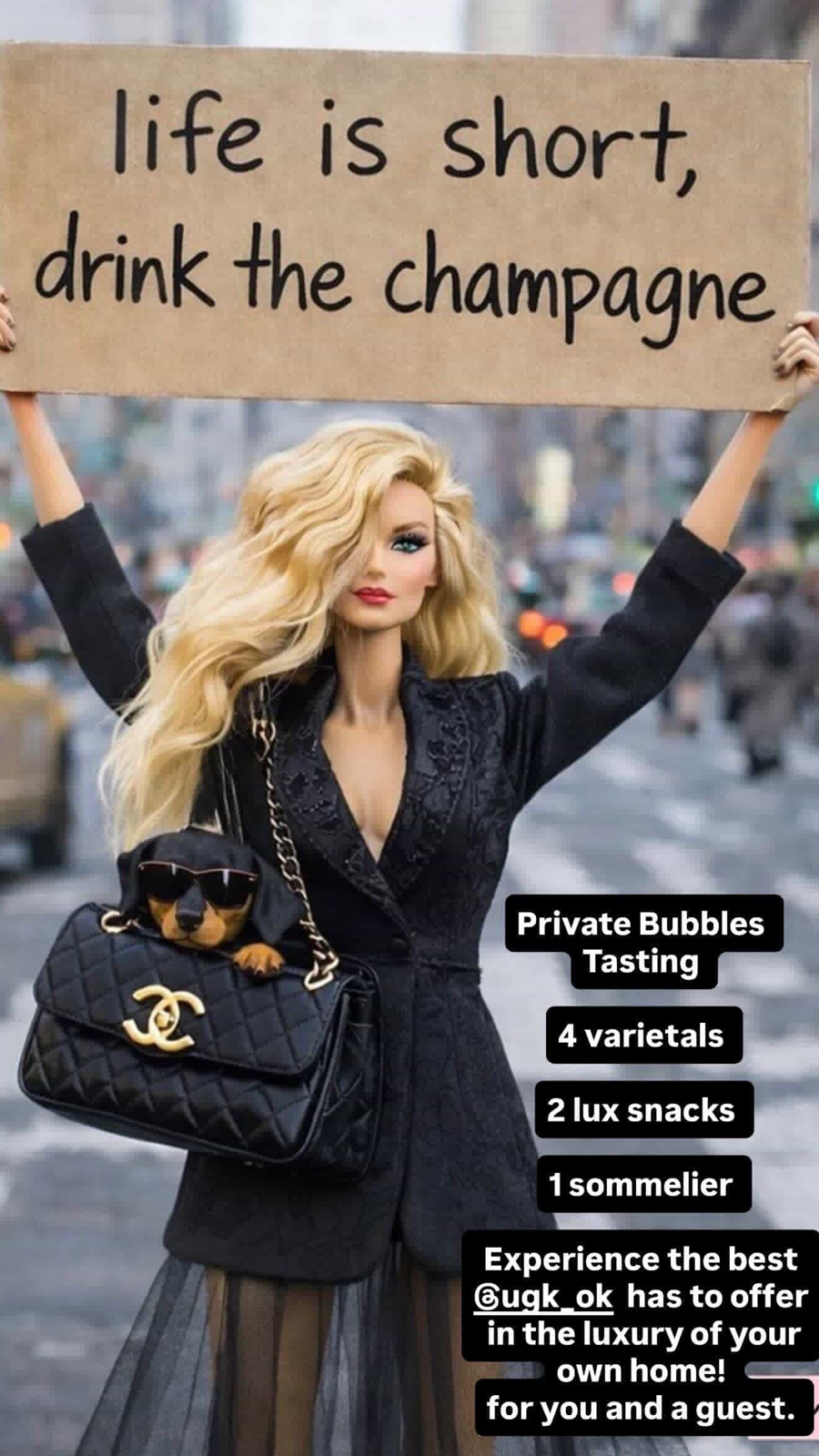 Champagne tasting for 2 presented by Underground Ghost Kitchen, including 4 varietals, lux snacks, and 1 sommelier.