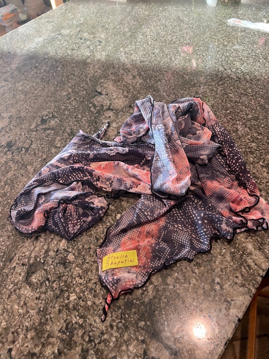 Giselle Shepatin is a designer who inspires delight and whimsy. Her designs celebrate all our senses. This is one of her beautiful handmade scarves which can be yours (or a gift for your best friend!) If the winning bidder is not local, they will be responsible for covering shipping costs.