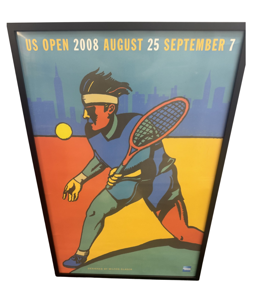 This vibrant official US Open 2008 poster was designed by legendary graphic artist Milton Glaser, best known for the iconic I ❤️ NY design. Featuring bold colors and dynamic movement set against the New York skyline, this piece captures the energy and excitement of one of tennis’s most prestigious tournaments.