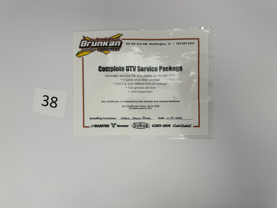 Complete UTV Service Package-Engine Oil & Filter Change, Front and Rear Differential Oil Change, Full Grease Service, Unit Inspection