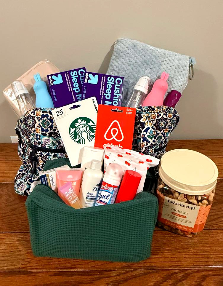 Ready for your next getaway? This dreamy travel bundle has everything you need to wander in comfort and style! Enjoy a $200 Airbnb gift card for your next adventure, a Starbucks gift card for that pre-flight caffeine fix, and all the travel must-haves to keep you relaxed on the go — including sleeping masks, TSA-approved toiletry bottles, and a soft blanket for cozy travels. Pack it all up in a chic Martha Stewart travel bag and a beautiful Vera Bradley Weekender Bag — because who says travel can’t be stylish? 🌎✨ This auction item includes: - $200 gift card to Airbnb - $25 gift card to Starbucks - 2 sleeping masks and 1 foldable blanket - Trail mix, packing cubes and Travel size toiletries - TSA approved refillable bottle toiletries - Martha Stewart toiletries bag - Vera Bradley Weekender bag