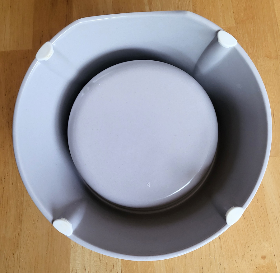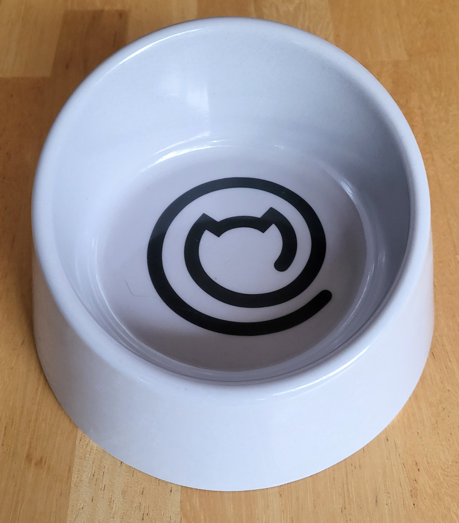 No tip, high back bowl with angled rim reduces messes