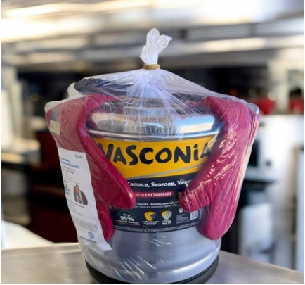 Be ready for the holiday season or any weekend boil with this steamer and gear combo. It includes: - Aluminum 32 Qt steamer for tamales, seafood and vegetables. - Mitten style hot pot holders. - Long tongs.