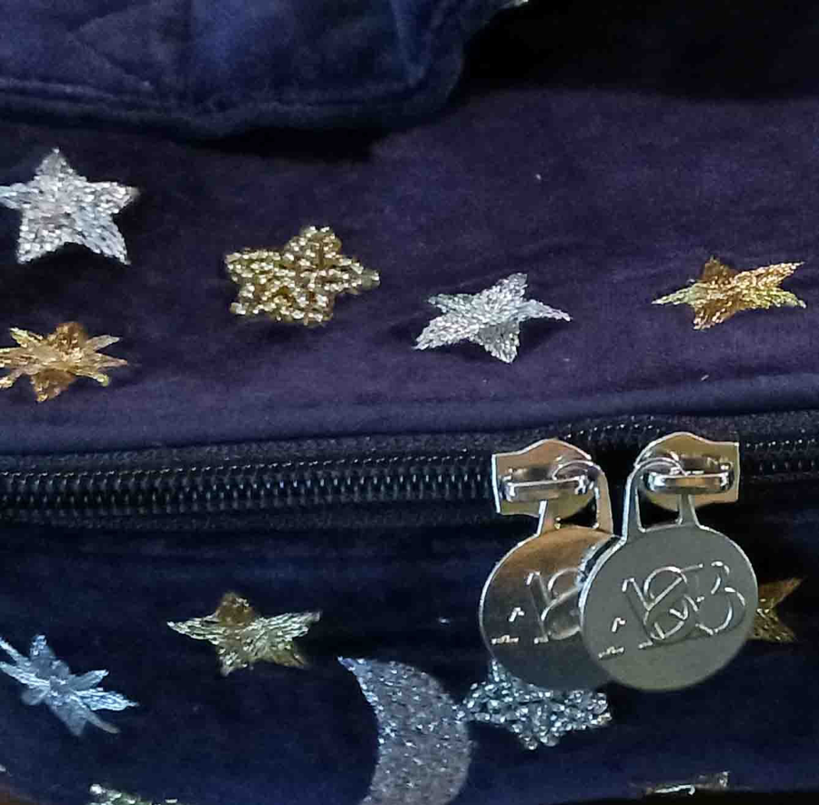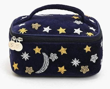 Your jewelry deserves something truly special. House your jewels in this jewel-toned velvet box adorned with hand-stitched constellations. Removable trays for the utmost organization, keeping your earrings, bracelets, and necklaces separate is a breeze. Perfect for home or ready for travel, a zip closure means your pieces are super secure. A velvet handle on top allows for easy carrying. 6 x 8 x 3.5 high