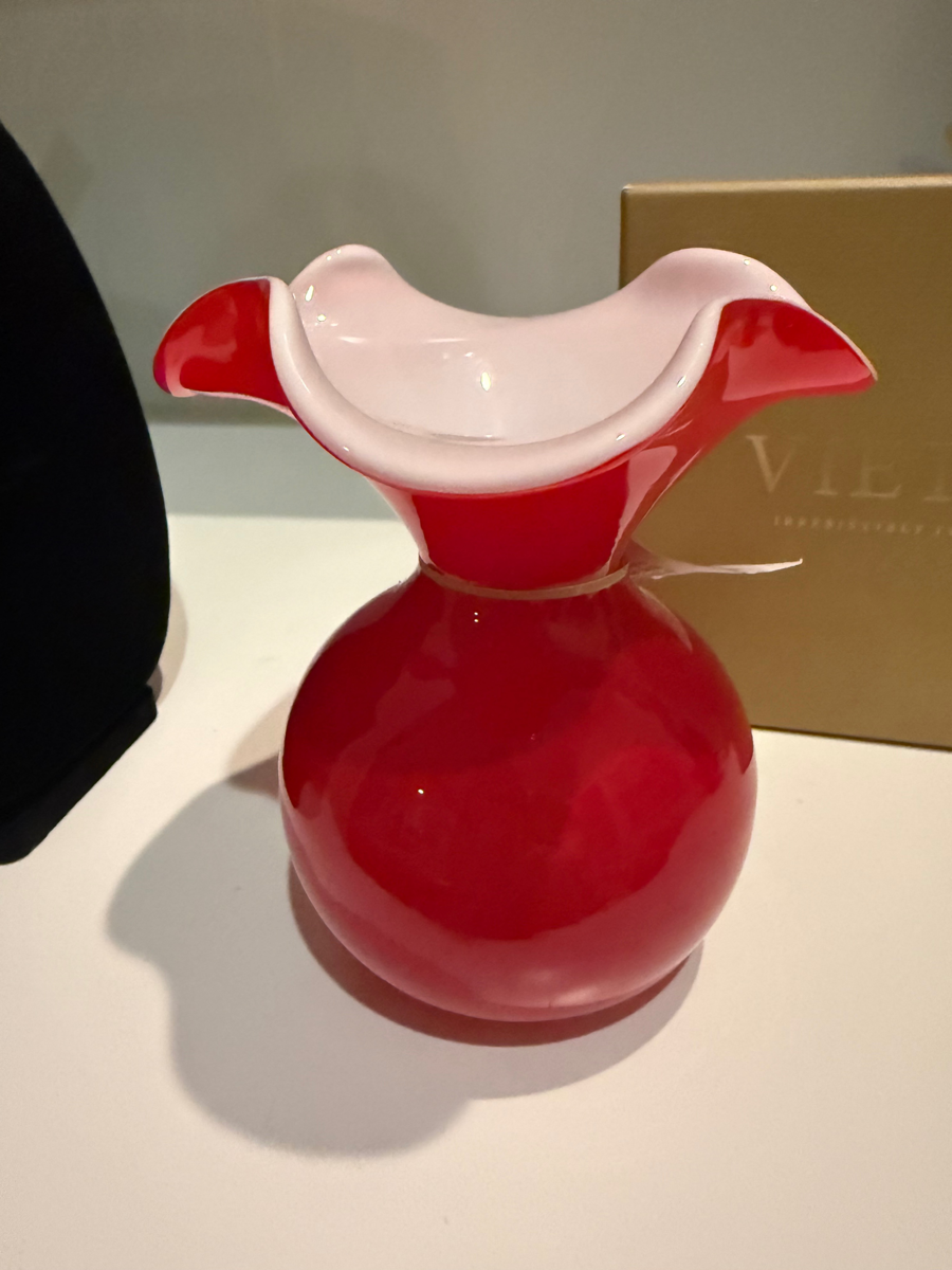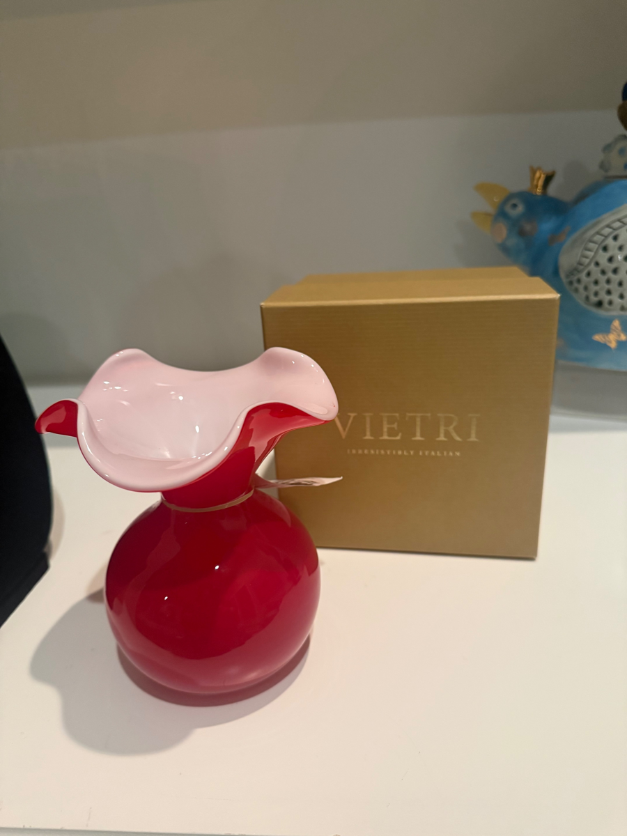 Vietri Hibiscus Red and White Handblown Glass Vase
