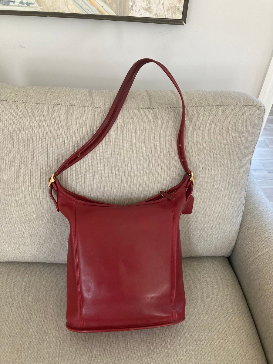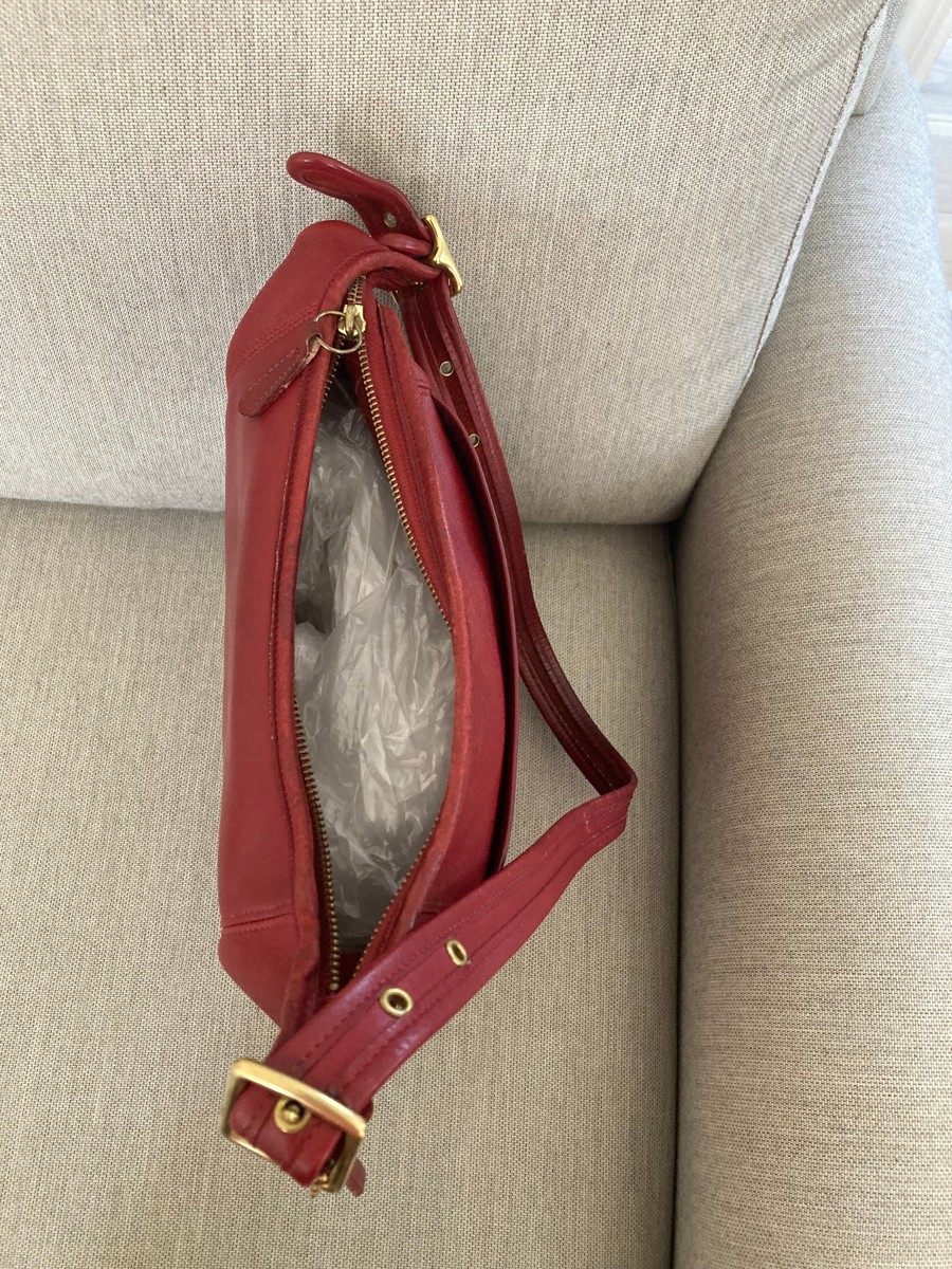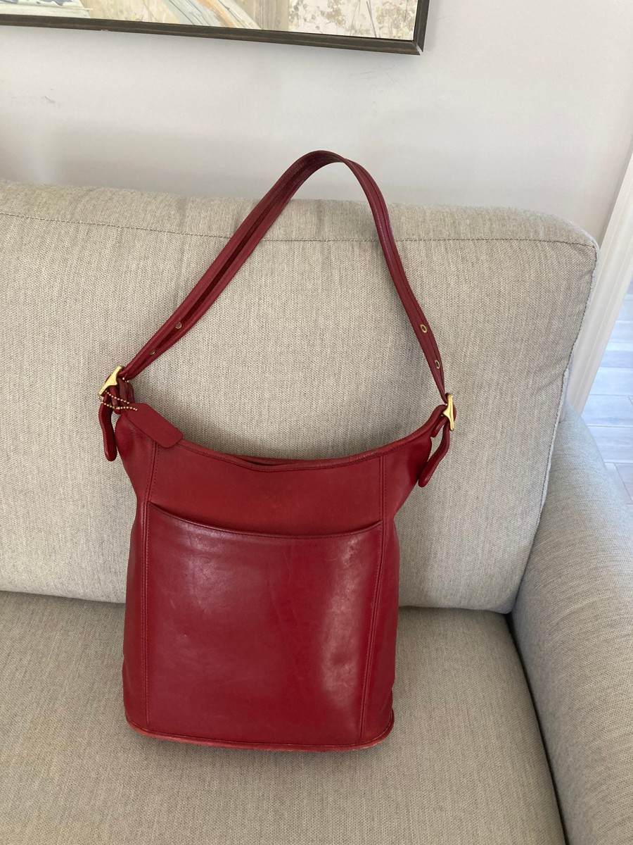 Is it time to update your wardrobe? This Legacy zipper shoulder bag by Coach is in overall excellent condition with some minor wear around the bottom. It was reconditioned by its current owner, retains its original brass hardware and is a rich reddish-brown color. There is one interior and one exterior pocket. This Coach bag was produced in Costa Rica and the interior is stamped "G1P-9060". The bag measures about 12" tall and its base measures about 11" x 5".