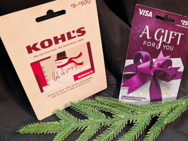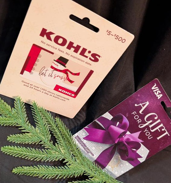 Includes a $25 Visa gift card and a $25 gift card to Kohl's, could do holiday shopping or give the gift cards to someone special!