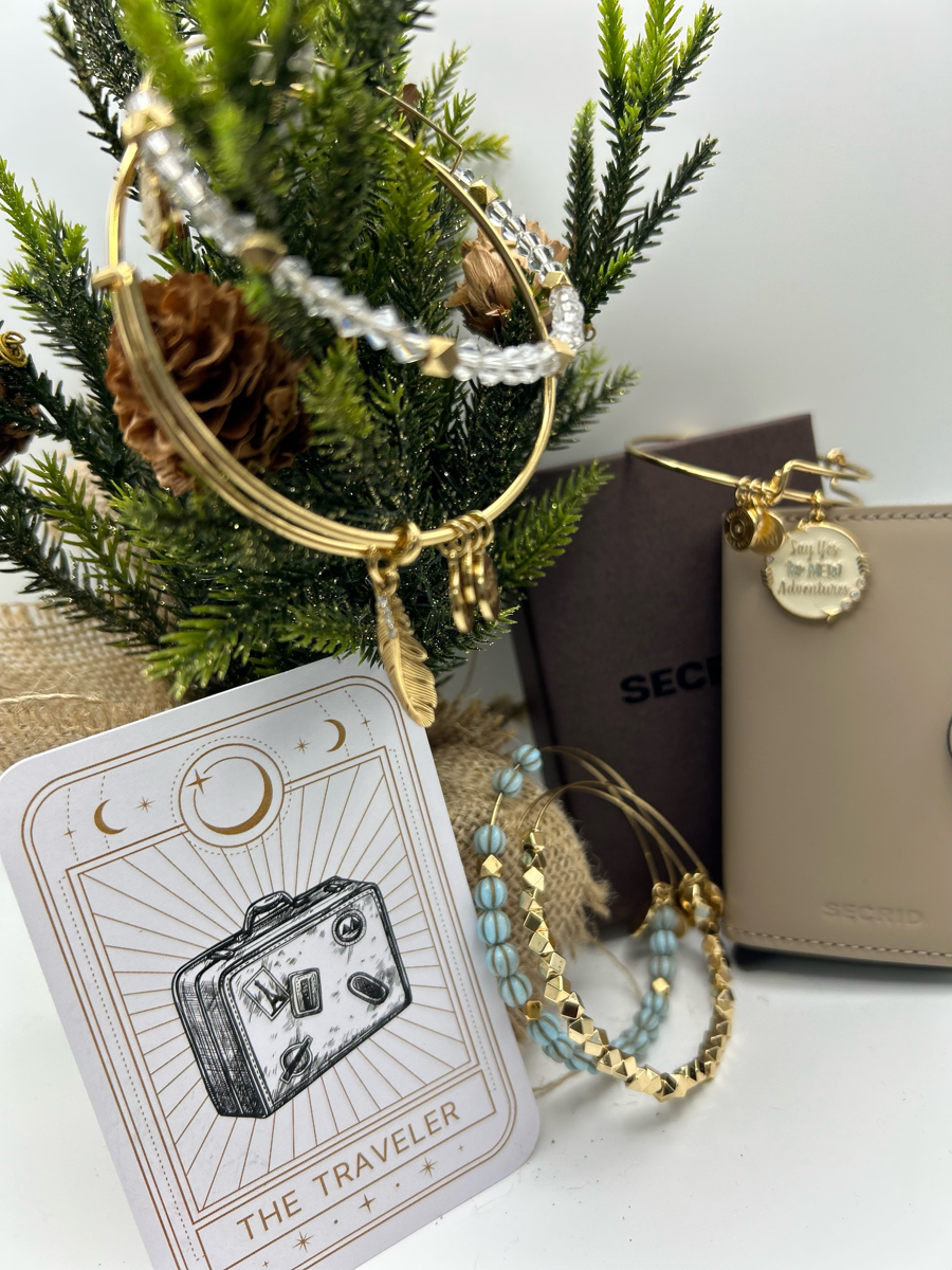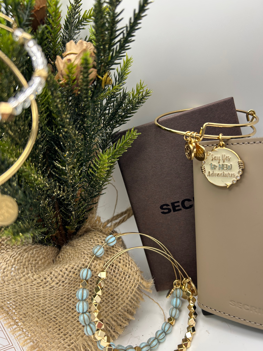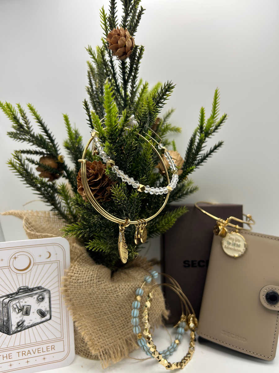 Step into a world of adventure with this stylish and inspiring package. “Wander & Wonder” pairs practicality with a sense of discovery: • Secrid Slim Wallet – slim, secure, and ready to travel wherever life takes you • Alex and Ani Bangle – “Say Yes to New Adventures,” a daily reminder to embrace the unexpected Whether you’re exploring a new city or chasing everyday adventures, this package is your perfect companion for journeys both big and small.