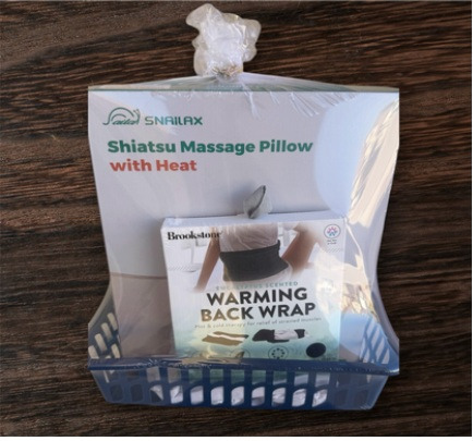 Cozy up and relieve tension with this warming set. Items included are: - Shiatsu Massage Pillow with Heat - Warming back wrap