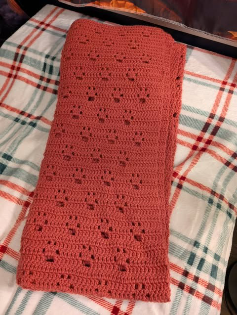 🎄🐾 Warm Woofs – Crocheted Paw-Print Throw 🐾🎄 Snuggle into the season with Warm Woofs, a beautifully handcrafted crocheted throw designed with cozy comfort and dog-lover charm in mind. Featuring an adorable paw-print pattern, this blanket brings warmth, whimsy, and a touch of puppy love to any room. Perfect for curling up on the couch, adding a festive touch to your décor, or gifting to the dog enthusiast in your life, Warm Woofs is both heartwarming and handmade with care. Soft, stylish, and full of personality, this one-of-a-kind throw is ready to keep you (and your furry friend) extra cozy this Christmas. 🎁 Bid now and wrap yourself in holiday warmth—one paw at a time!