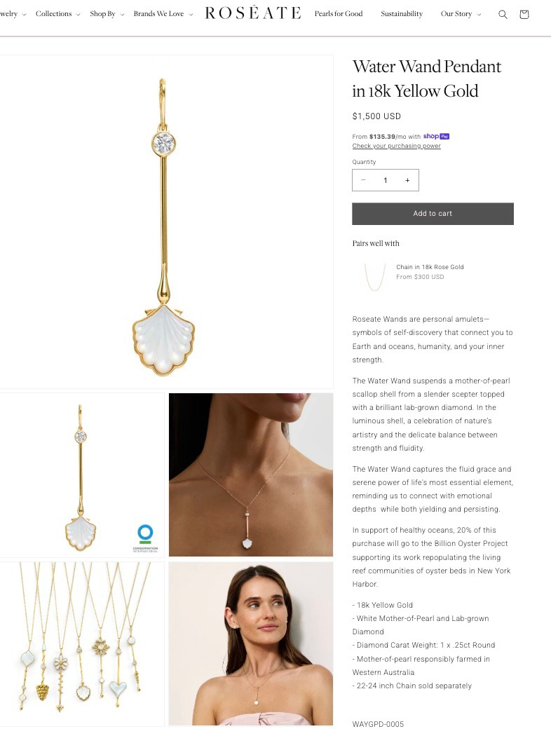 Pendant (no chain) - 18k Yellow Gold - White Mother-of-Pearl and Lab-grown Diamond - Diamond Carat Weight: 1 x .25ct Round - Mother-of-pearl responsibly farmed in Western Australia