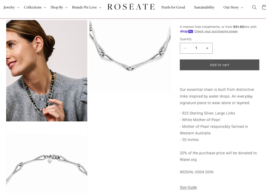 Sterling silver necklace: - 925 Sterling Silver, Large Links - White Mother-of-Pearl responsibly faarmed in Western Australia - 20 inches - 20% of purchase price will be donated to Water.org