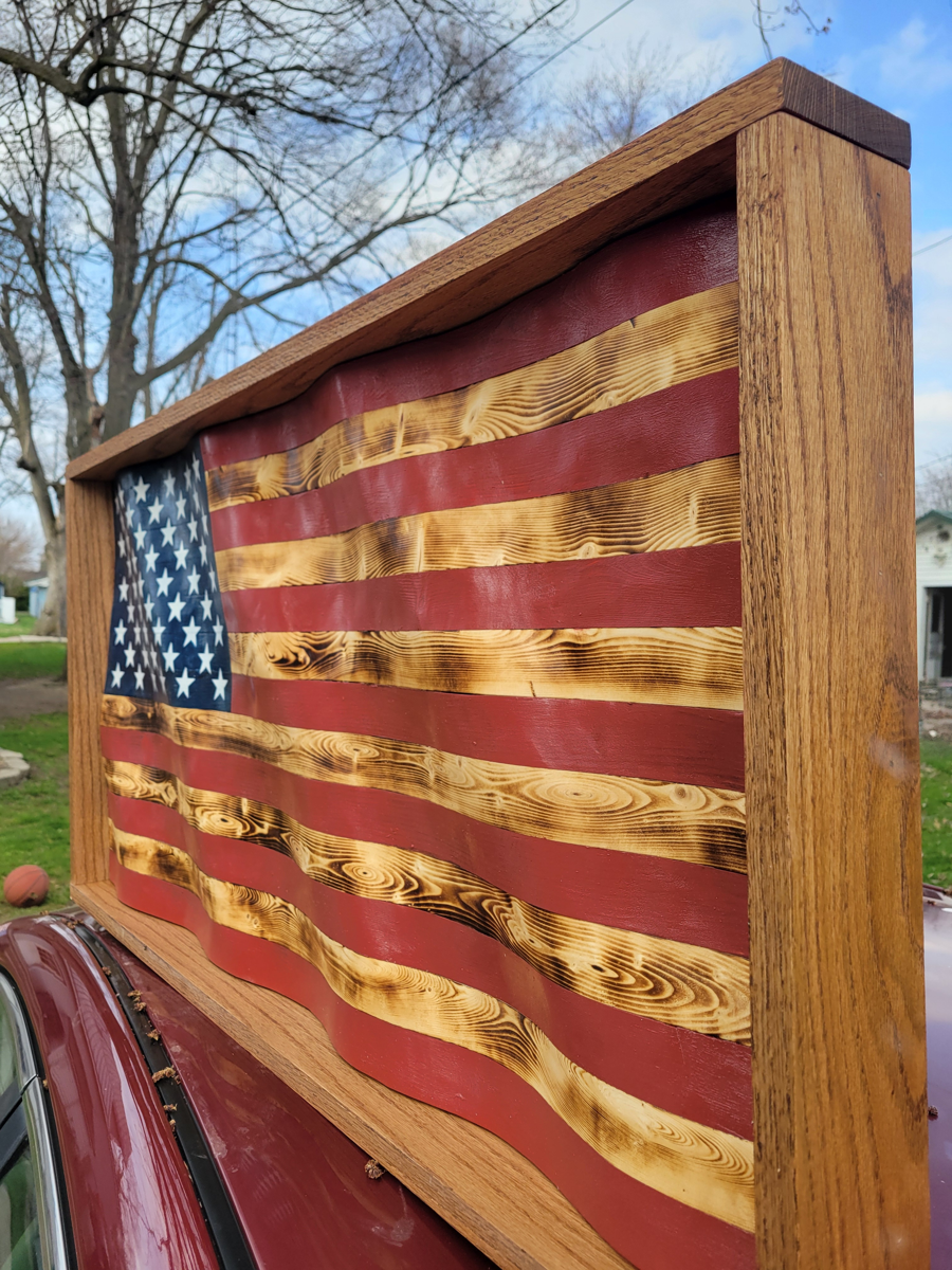 Wavy American Flag Wood Art – Handcrafted Rustic Patriot Piece