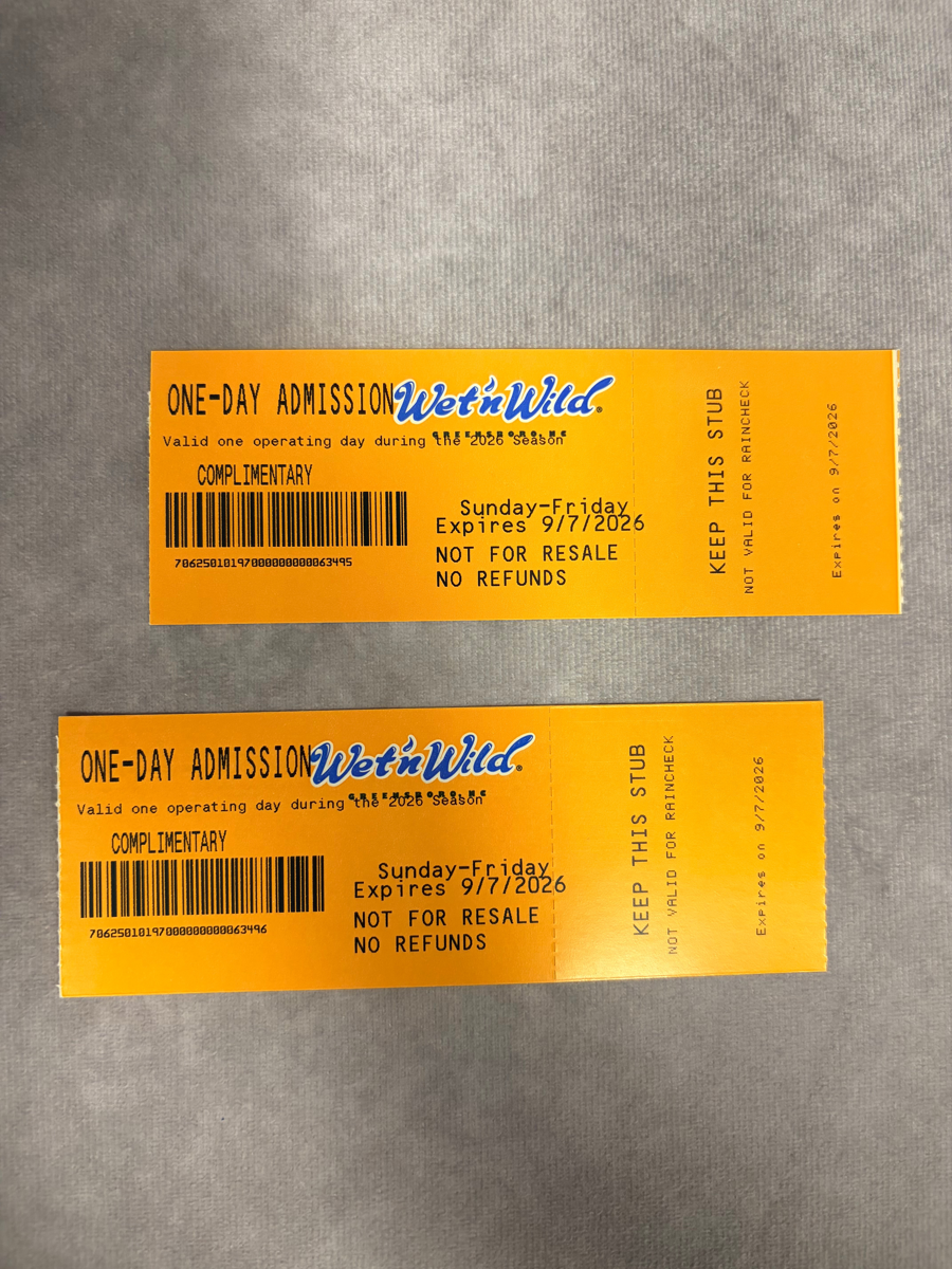 2 - 1 Day Passes for Wet N Wild Emerald Point Water Park.