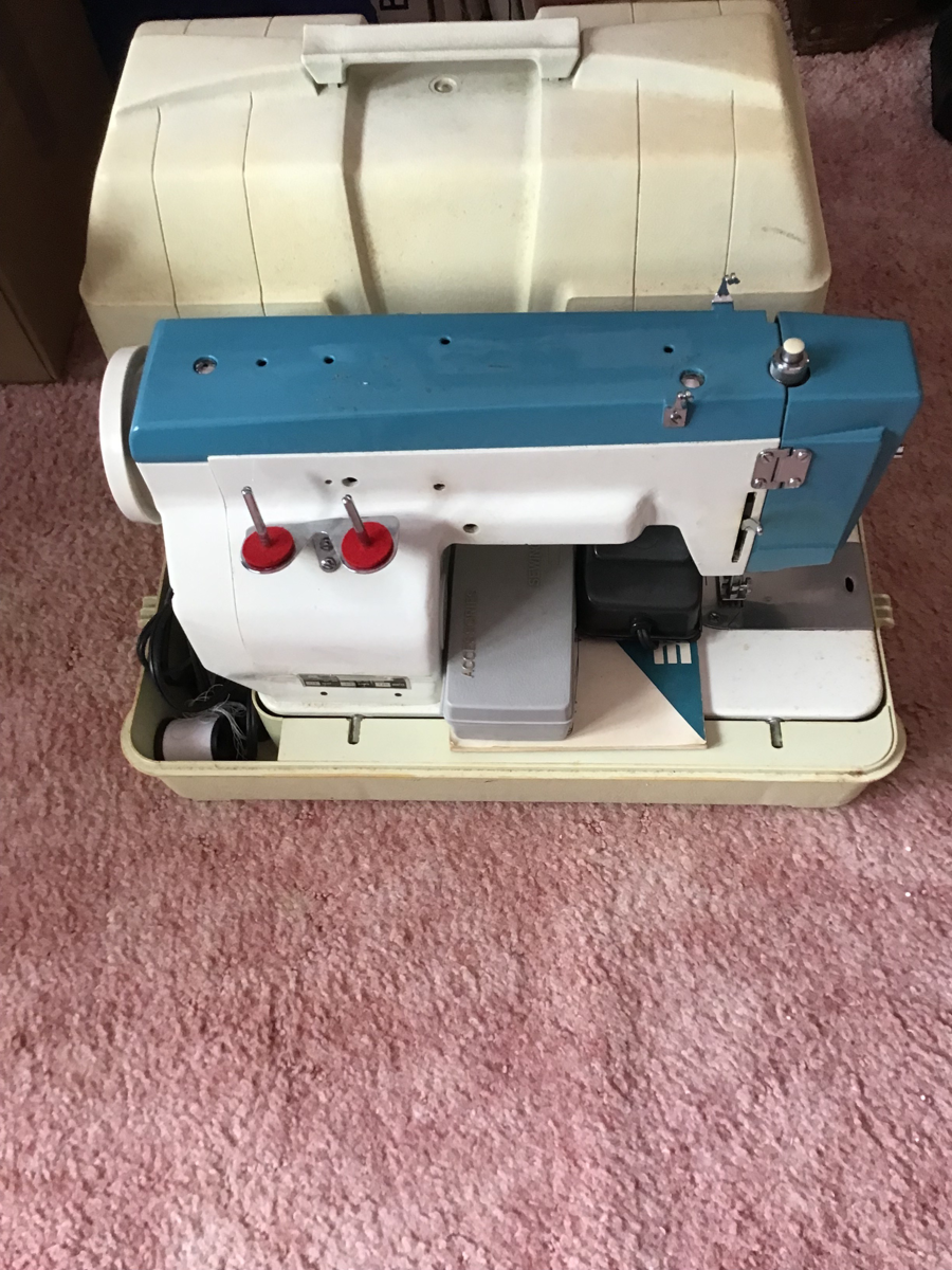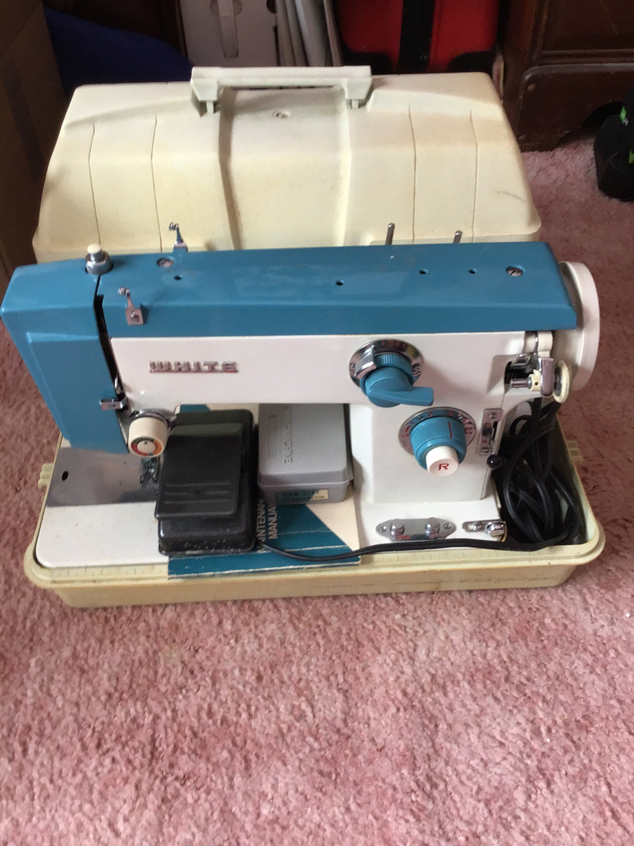 Used White sewing machine in good condition includes instruction booklet and accessories