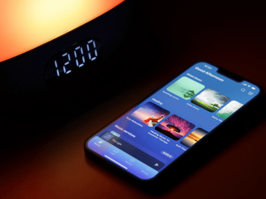 The WiiM Wake-up Light is an all-in-one smart device that combines a sunrise alarm clock, a reading light, and a speaker. It wakes you with a gradual sunrise effect and can play music, podcasts, or soothing sleep sounds through its built-in speakers. The device features built-in Alexa voice control, adjustable light color and brightness, and can be integrated into multi-room audio systems via Wi-Fi or Bluetooth. Donated by Astound