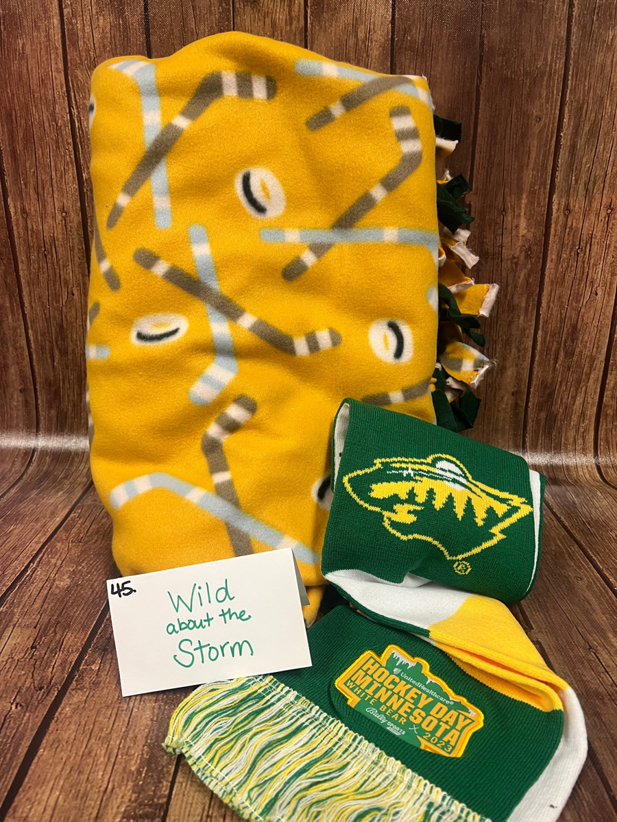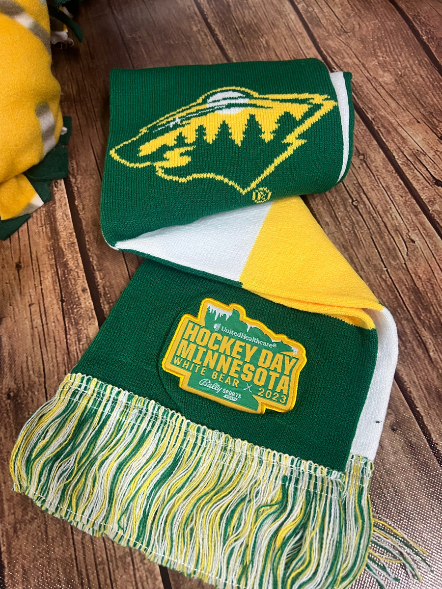 MN Wild scarf green/gold tie blanket- hockey design (approx. 47x54”)
