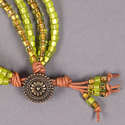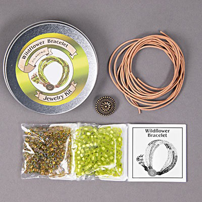 Enjoy creating your own Wildflower Bracelet in Cilantro. Each kit contains all the items you need to make your beaded leather bracelet at home. Our project kits are designed and handmade in Maine by Caravan Beads.
