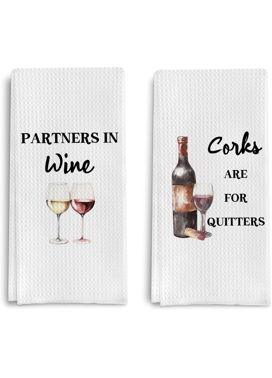 Experience a delightful evening with the William Chris Vineyard Winemakers Tasting for 4, where you and your friends can indulge in exquisite wines. This exclusive package includes a stylish black metal wine cork display holder that can hold up to 150 corks, perfect for showcasing your wine adventures. To elevate your tasting experience, you'll receive a beautiful set of 4 William Chris wine glasses, for your favorite wines, along with two bottles of William Chris wine. Additionally, you'll enjoy a humorous touch with a set of 2 funny wine kitchen towels, featuring witty phrases: "Partners in Wine" and "Corks are for quitters." An unforgettable tasting experience that combines great wine, laughter, and stylish accessories!