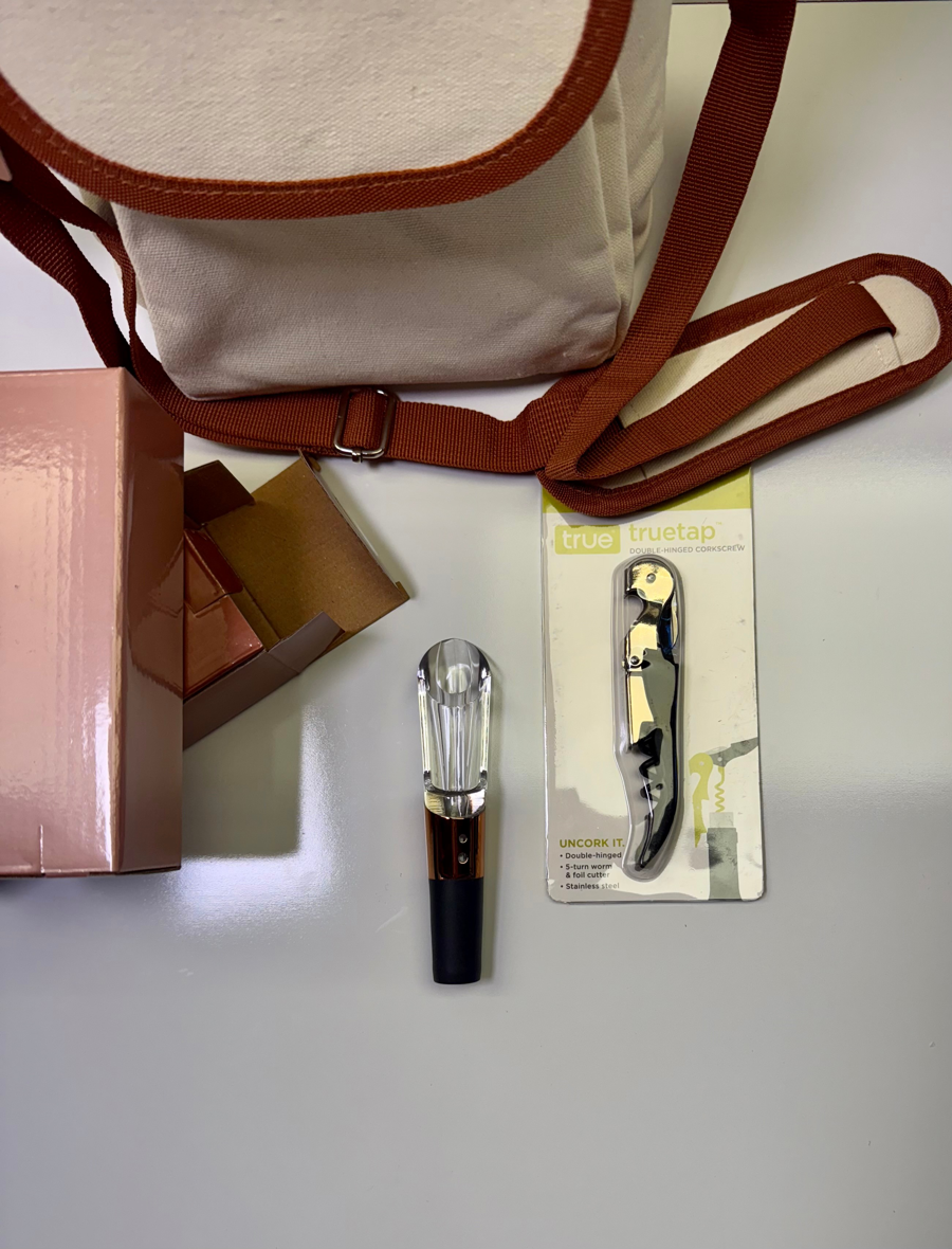 A great gift for wine lovers, this insulated wine caddy includes a generous front pocket with wine opener and stopper. Bonus: Two bottles of wine from Antietam Creek Vineyard donated by Jane Gamble.