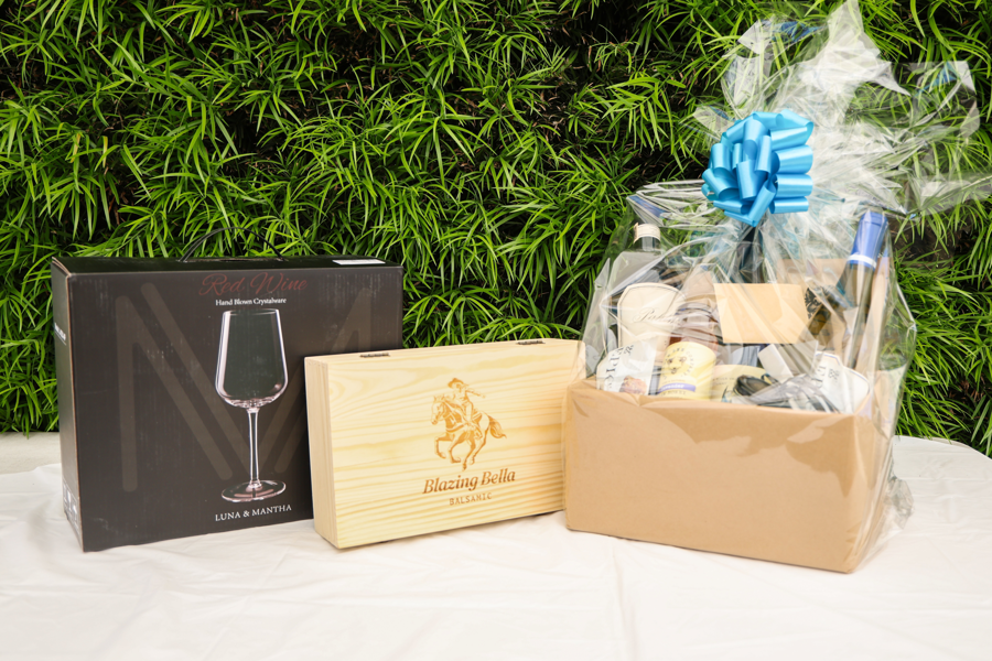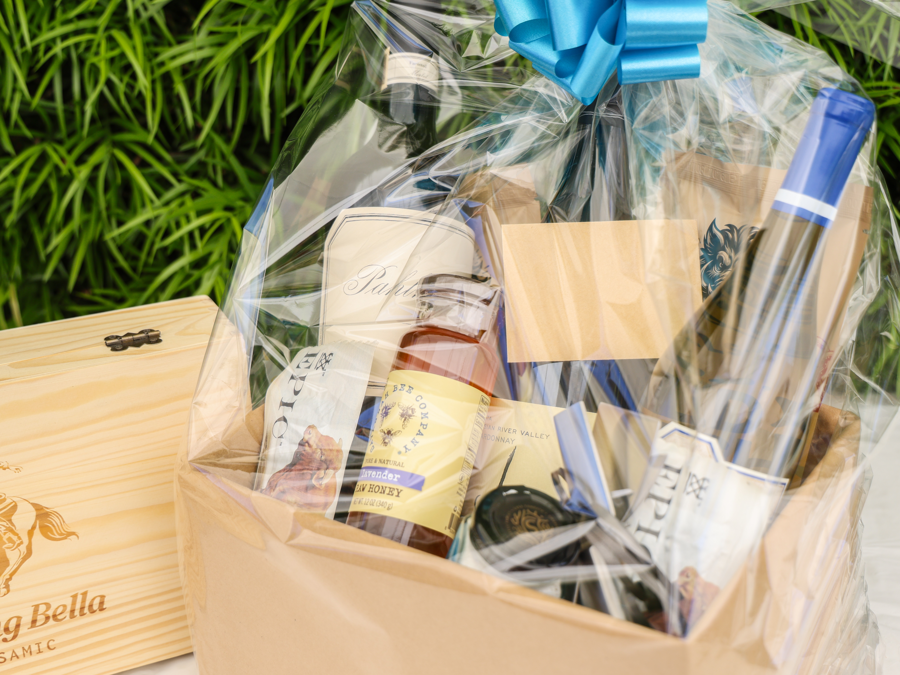 Indulge in the perfect pairing with this elegant Wine & Cheese Basket! Featuring a selection of premium wines, including chardonnay and merlot, complemented by gourmet touches like truffle salt, flavored olive oil, and honey. Complete with wine glasses and cheese knives, plus a $50 Plaza Produce gift card to pick out your favorite cheeses, this basket is perfect for a sophisticated night in or entertaining guests.