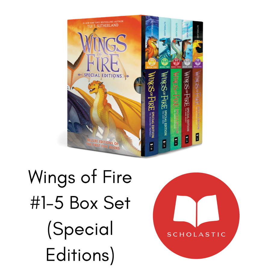 Go back to where it all began with the special editions of the first five books in the Wings of Fire series. This set includes all five books in the first Wings of Fire story arc, each with never-before-seen character sketches, an exclusive Q&A with bestselling author Tui T. Sutherland, and stunning stenciled edges. Product Details ISBN13: 9798225008284 Format: Boxed Set Ages: 8 - 12 Grades: 3 - 7 Pages: 1712 Weight (lbs): 4.55 Dimensions: 3.9 x 5.4 x 7.9 Language: English Wings of Fire #1-5 Box Set (Special Editions) Boxed Set 49.45
