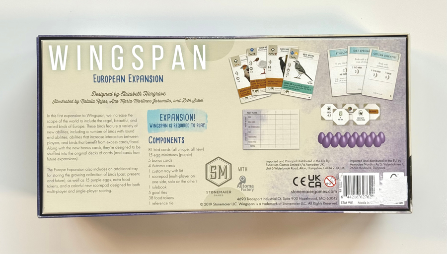 The European supplement pack for the bird knowledge game, Wingspan.