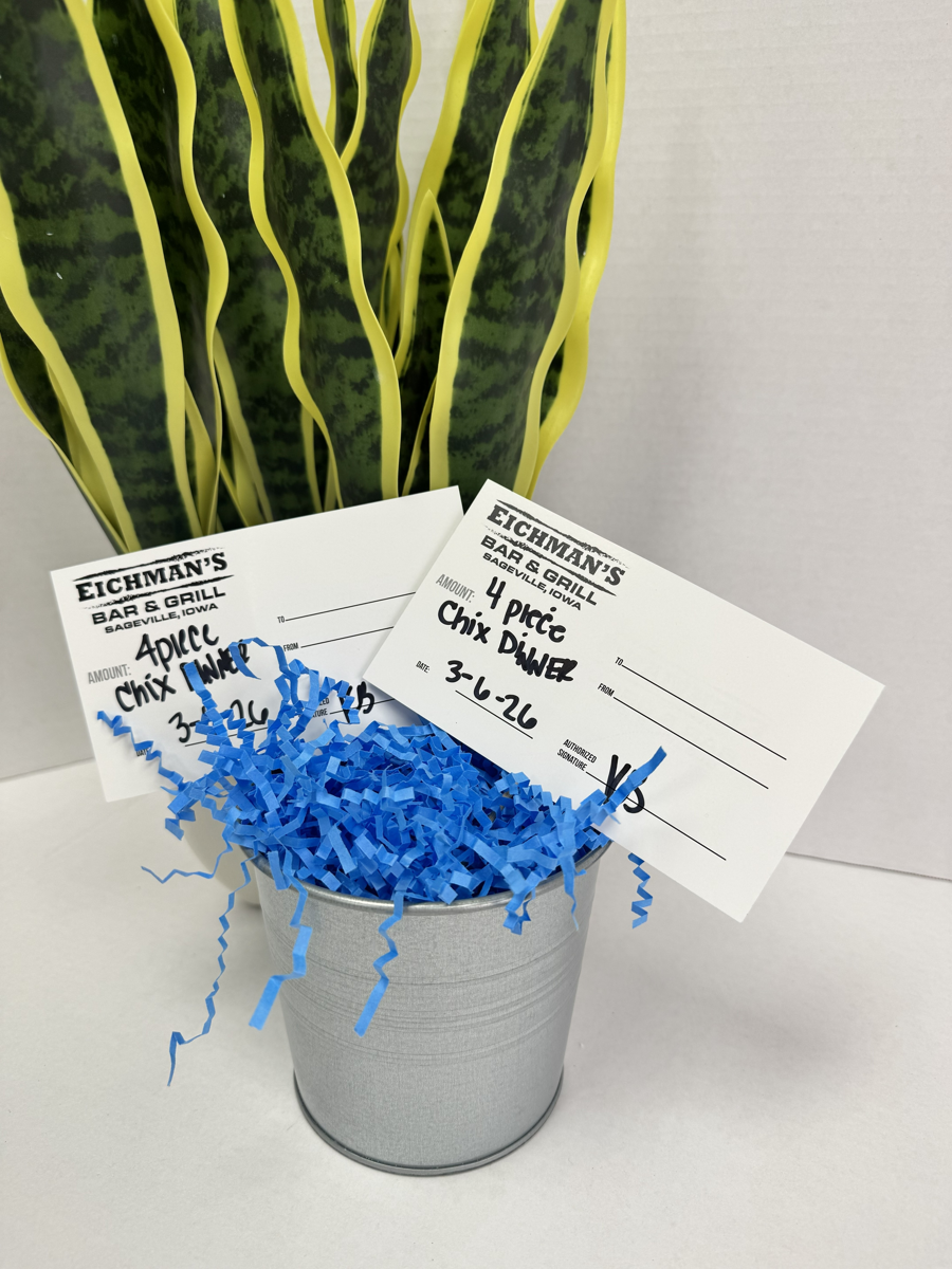 (2) Certificates each good for a 4pc. Chicken Dinner at Eichman's Family Restaurant located at 11941 U.S. 52, Dubuque