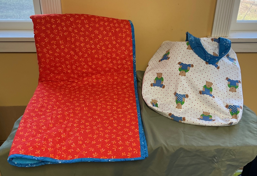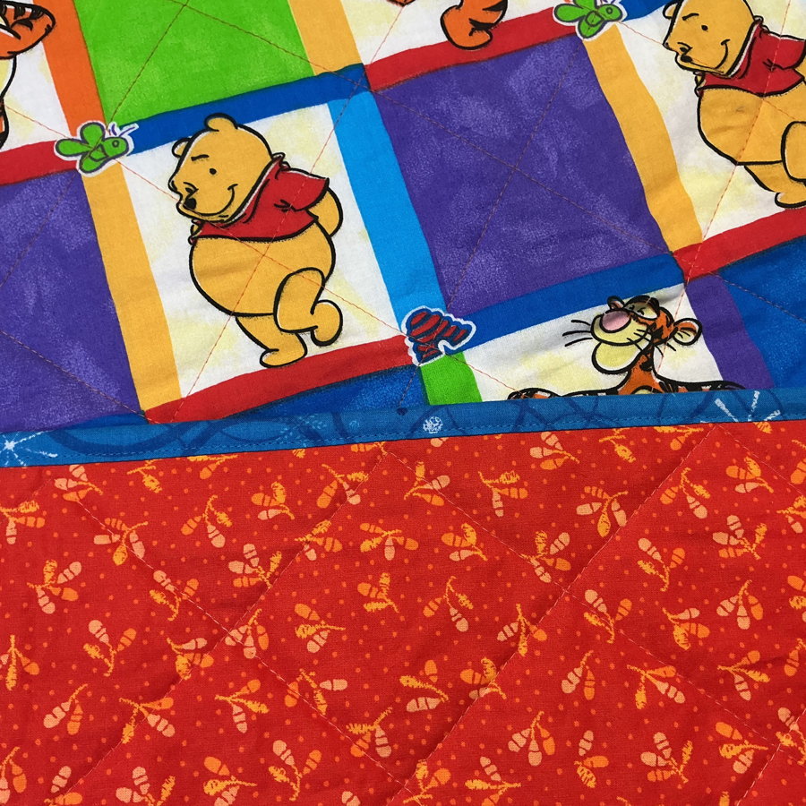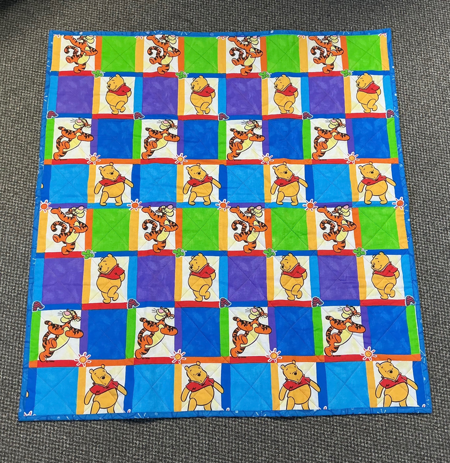 Winnie the Pooh themed reversible tote and reversible quilt and book. “friendship Day”. Quilt is 31 7/8 x 34 7/8.