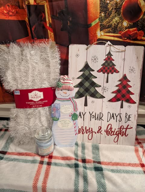 ❄️✨ Winter Wonderland Holiday Basket ✨❄️ Bring the magic of the season home with our Winter Wonderland basket—a cozy, cheerful collection perfect for holiday decorating, relaxing, and indulging! This festive set includes: 🎄 Decor & Cheer: Let It Snow snowman decor, snowmen ornament set, tinsel garland, and a May Your Days Be Merry & Bright wooden hanging sign. ☕ Cozy Treats: Snowman coffee mug, caramel & mocha latte K-Cup, and candy cane chapstick. 🛁 Relax & Refresh: Bath bomb set, plush throw, and Bath & Body Works Pure Wonder body cream & fragrance mist. 📌 Holiday Fun: Snowman magnetic clip list pad, 3oz candle, and snowflake picture frame. All beautifully bundled in a festive snowflake basket, this Winter Wonderland collection is ready to fill your home with holiday joy—or be the perfect gift for someone special! ✨ Bid now and make your season merry, bright, and wonderfully cozy!