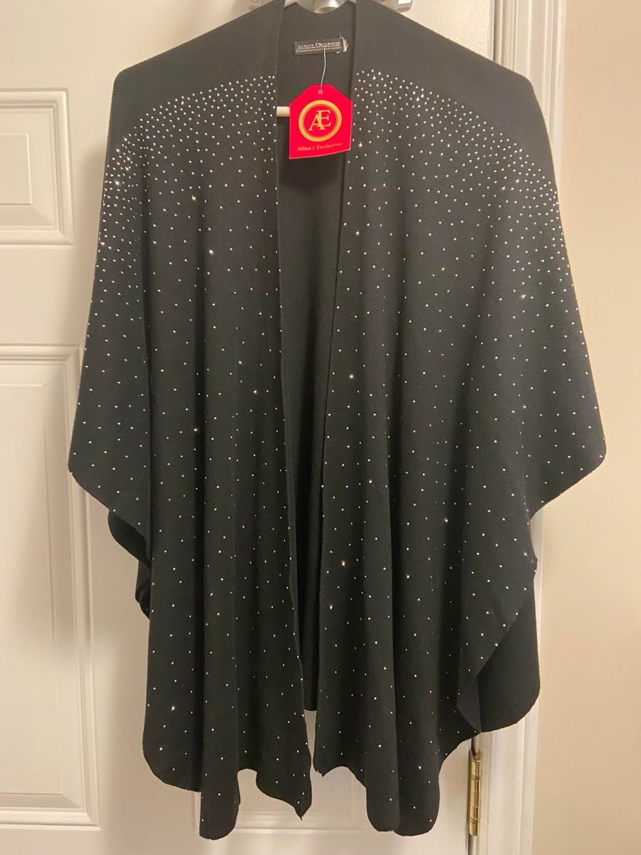 Dazzling Black Polyester knit poncho style top by Alina's Exclusives