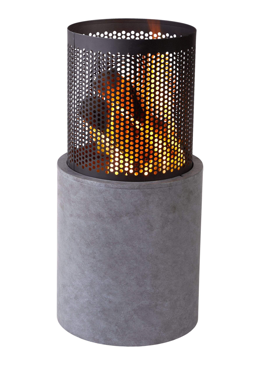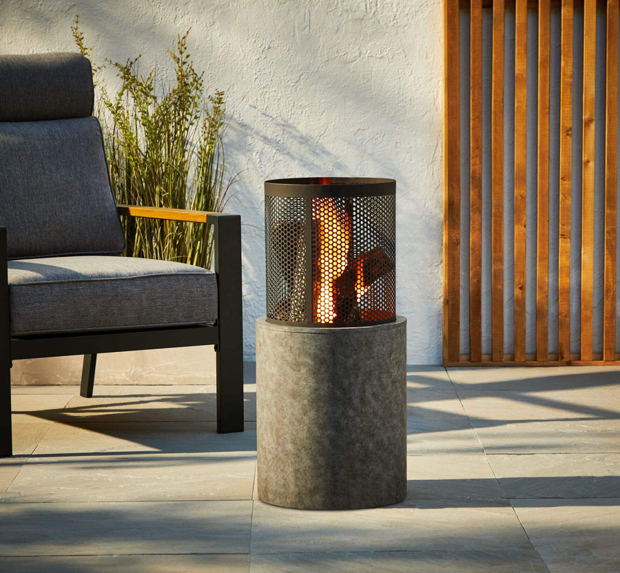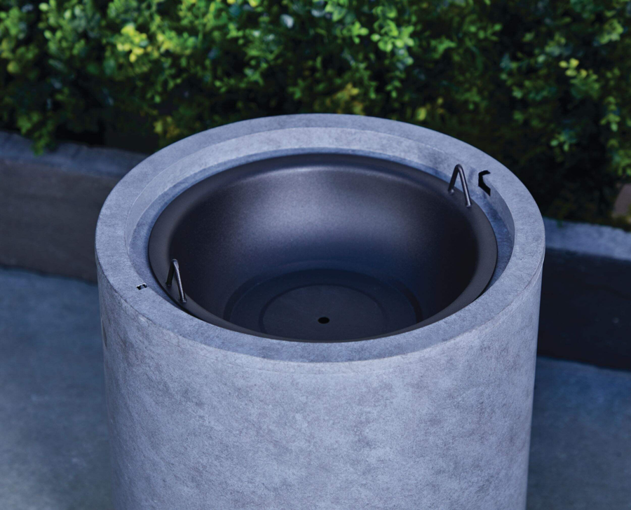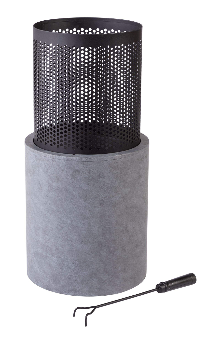 Wood Burning Fire Column by For Living features a sleek design with a stylish, minimalist flair. Durable steel construction with a sleek, grey faux-concrete finish. Includes mesh spark screen, fire poker and fire bowl. Outdoor use only. Removable fire bowl for easy ash cleaning. Easy to assemble Diameter: 35.6 cm (14 in) Height: 73.6 cm (29 in)