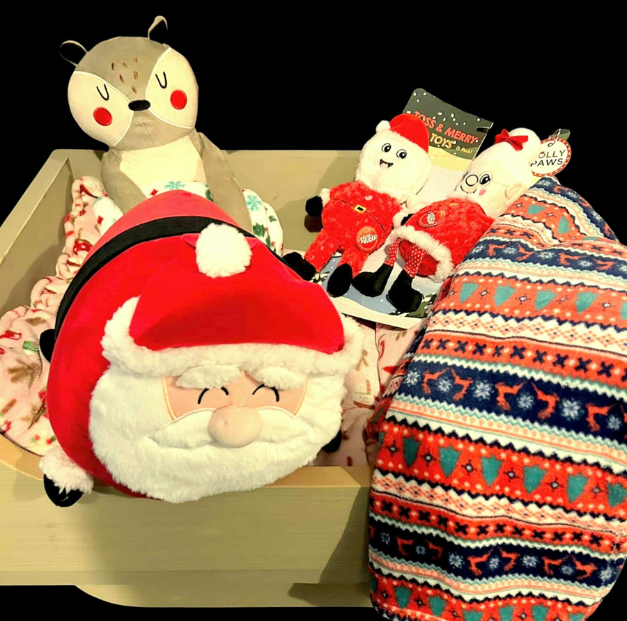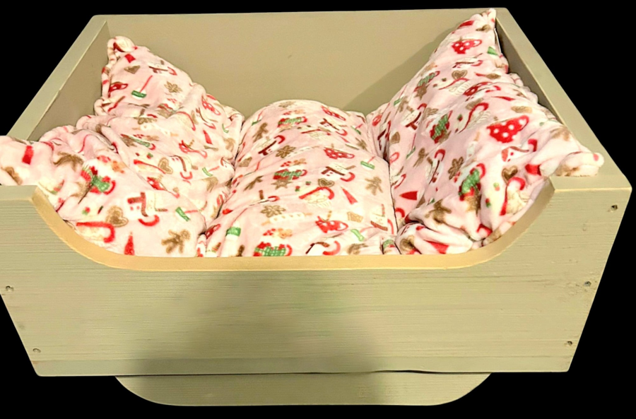Your dog will say "woof woof" (thank you in dog language!) for this well made wooden dog bed! The bed measures 22 inches by 26 inches and comes with a festive cushy dog pillow to keep your best buddy quite comfy! This bed also comes with lots of toys to keep your pet busy and happy while you are entertaining guests!