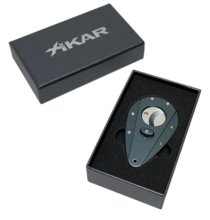 Xikar Double Guillotine Cutters stainless steel blades with aluminum body. Double guillotine 54-ring gauge, cuts up to 64-ring gauge.